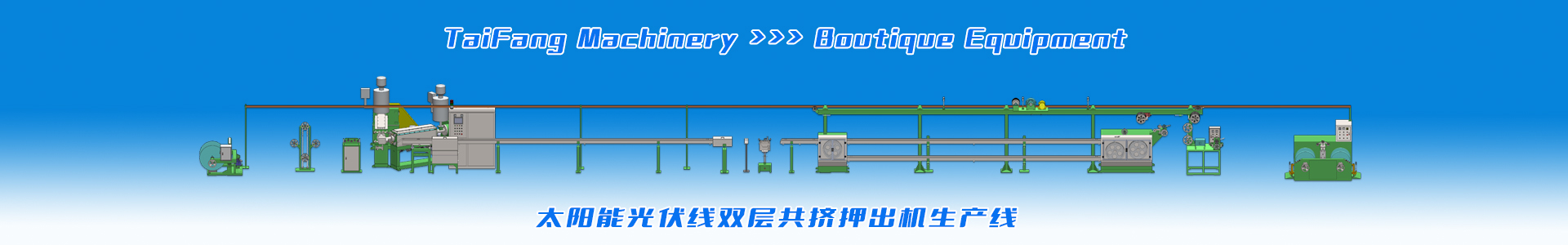 適應(yīng)于生產(chǎn)太陽(yáng)能光伏電纜、低煙無(wú)鹵料電纜、輻照電纜、XL-PE交聯(lián)聚乙烯電纜,主要有高速絞線(xiàn)機(jī)、雙層共擠及串聯(lián)生產(chǎn)線(xiàn)設(shè)備。